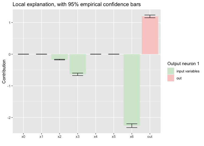 The user can also plot local explanations for each input variable related to a prediction using plot():