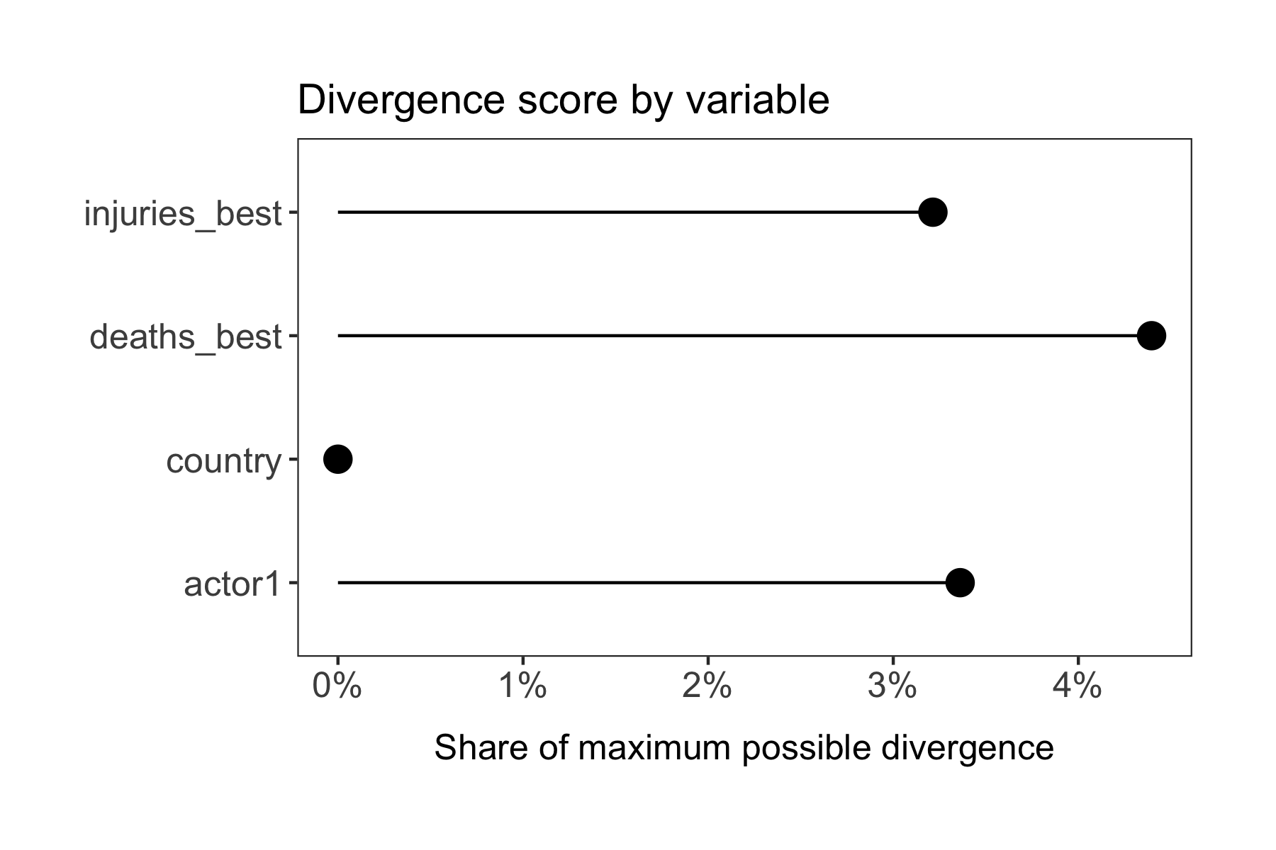 variables = c("country", "actor1", "deaths_best", "injuries_best"),