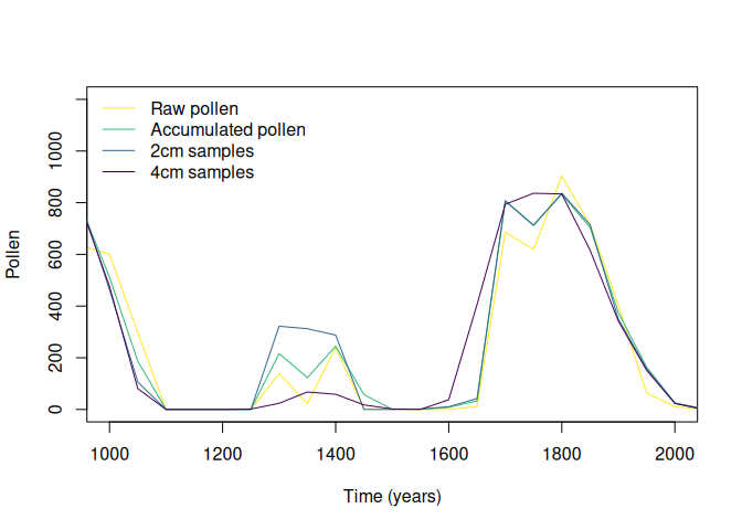 5.Apply the virtual accumulation rate to the simulated pollen, and sample the outcome at different depth intervals.
